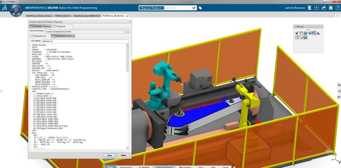 Not only does 3DEXPERIENCE Robotics allow you an early discovery and resolution of your process, but it also lets you import your native program and validate it. You could also preview your newly created “Offline program” using the native robot language.
