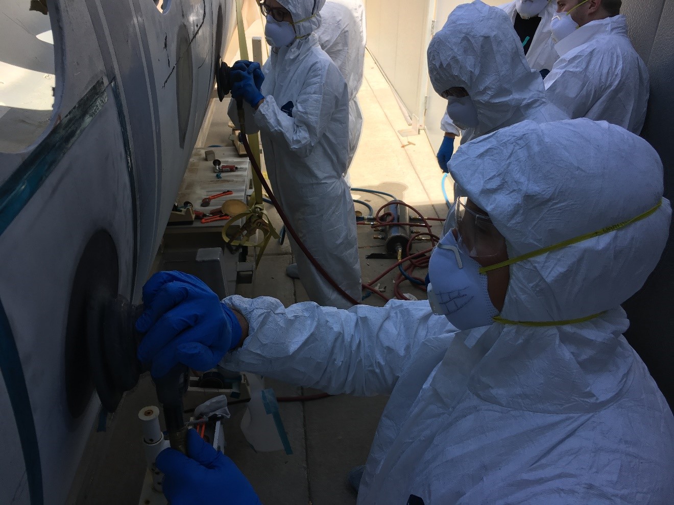 - Damaging a fuselage and then scarf sanding the layers, mixing a resin system, preparing dry carbon for wet layup, cutting patches, repairing the fuselage and understanding bagging/curing procedures when you can’t place object in autoclave