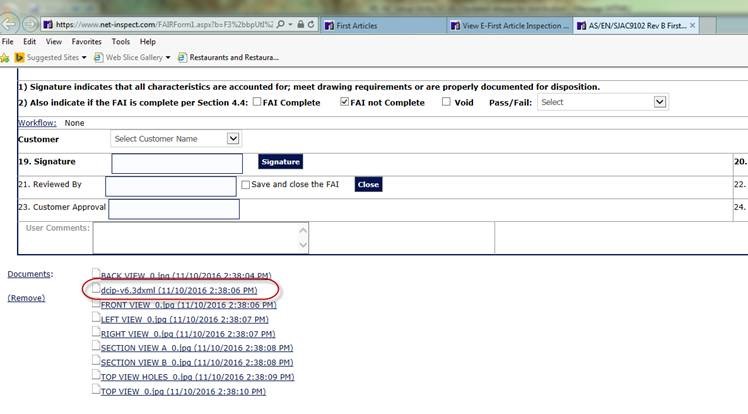 - For a given FAI publish, relevant documents are automatically posted to Net-Inspect as attachments (3dXml, jpg images of captures, etc).