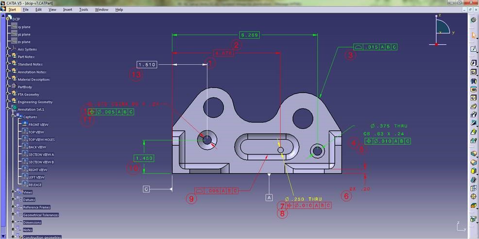 - Users now have the option, during Verisurf import, to automatically change CATIA annotation colors for review, based on actuals –vs– tolerance requirements.