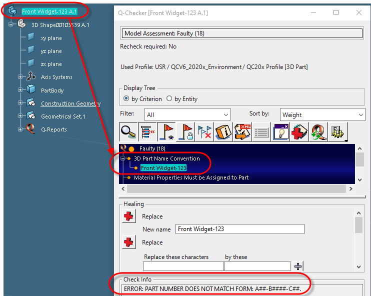 Do you ever find yourself correcting the Part Number to conform to the company naming standards? Q-Checker can be configured to check and validate standardized part numbers and other attributes/meta data of the model: