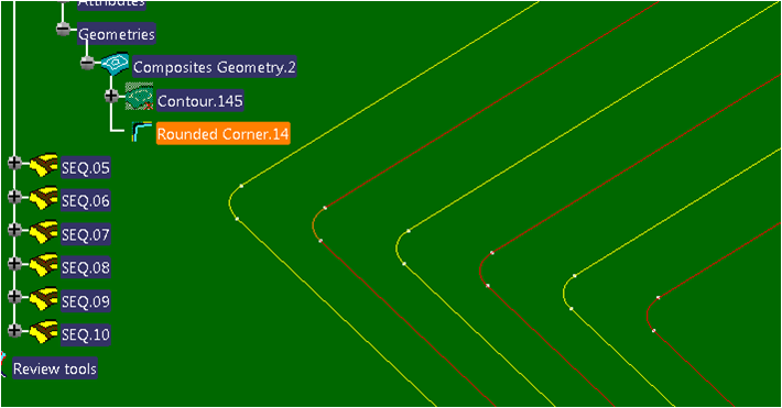 Rounded contours can sometimes be a necessity for CNC cutting machines to cut the plies fast without needing to lift the knife at sharp corners in the ply boundaries. Sometimes these corners were built directly in to the CPD ply contours or added when the ply cutting software processed flat patterns prior to nesting. Now there is a dedicated CPD wizard that can find the sharp edged in the plies and round them automatically by adding a special CATIA feature that can be modified or removed on demand.