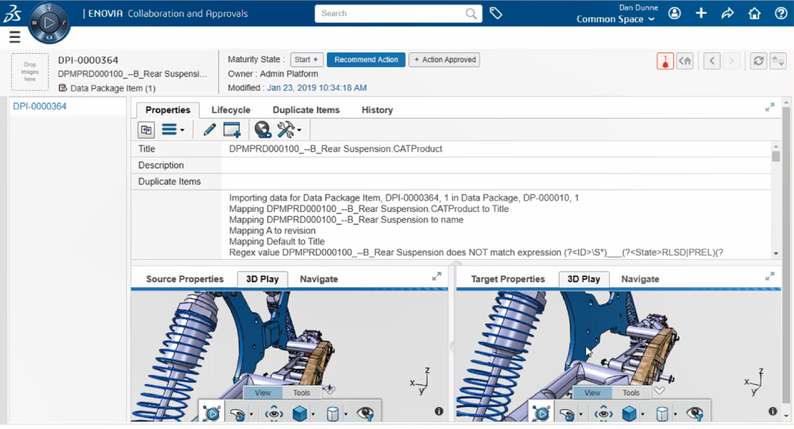 - Import of the updated product data package into the Dassault Systèmes 3DEXPERIENCE environment