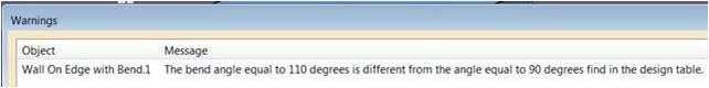 Also note that if you use an angle in your design that isn’t explicitly defined in the BDT, you will get a warning message in CATIA stating the obvious:
