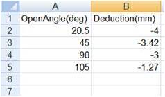 Then, in each of the BendTable Excel files you need to define the bend deduction value (a positive value makes the flat pattern “shorter”, a negative value makes the flat pattern “longer”).